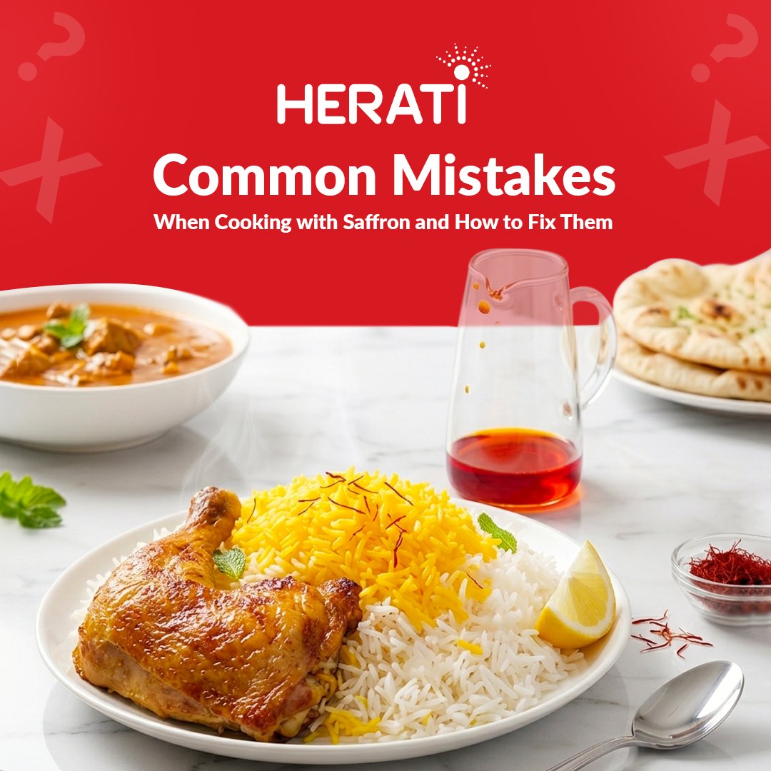 Common mistakes like not soaking or using low quality saffron can ruin your dish. Learn how to use **pure saffron** the right way with **Herati Saffron** for the best flavor and color.